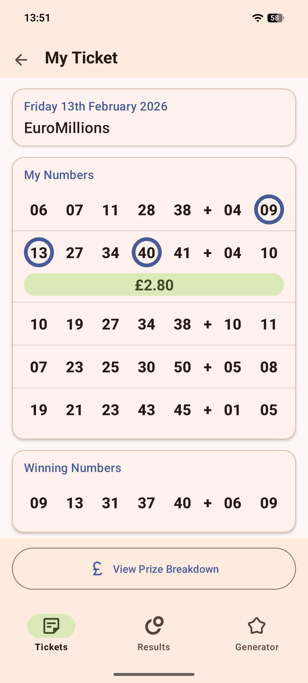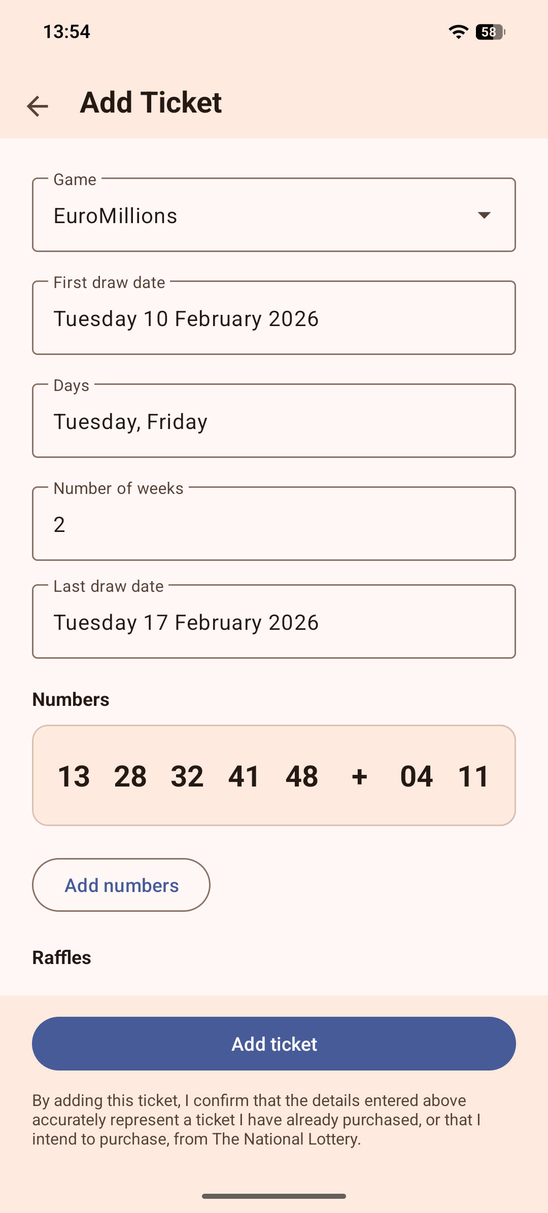 "Have been using this app for some months now and very pleased with it. Simple and quick to use and takes all the worry out of checking not just the numbers but the raffles as well."