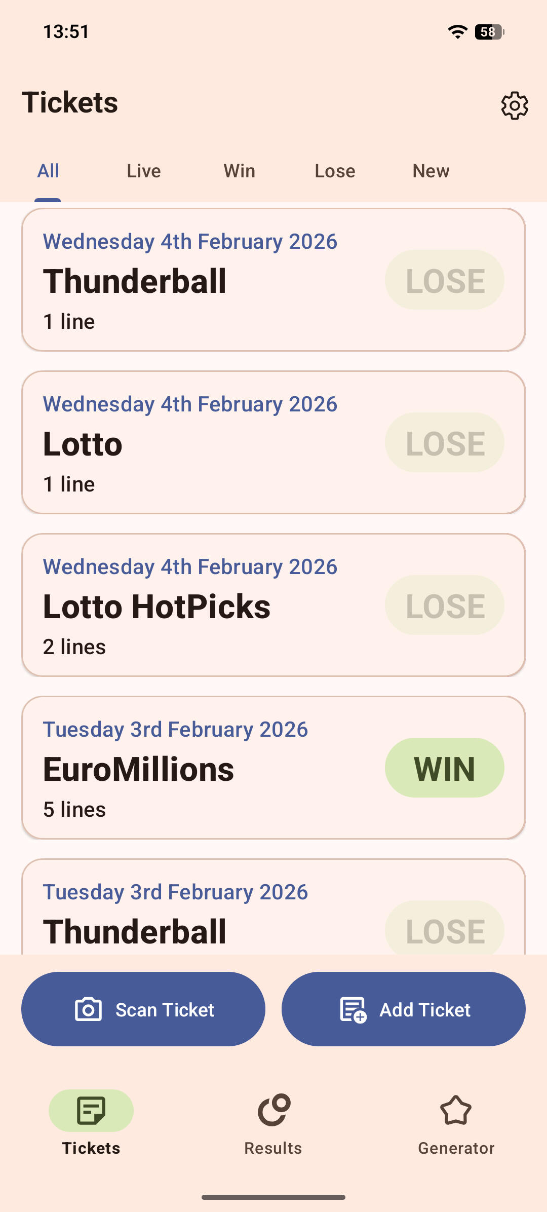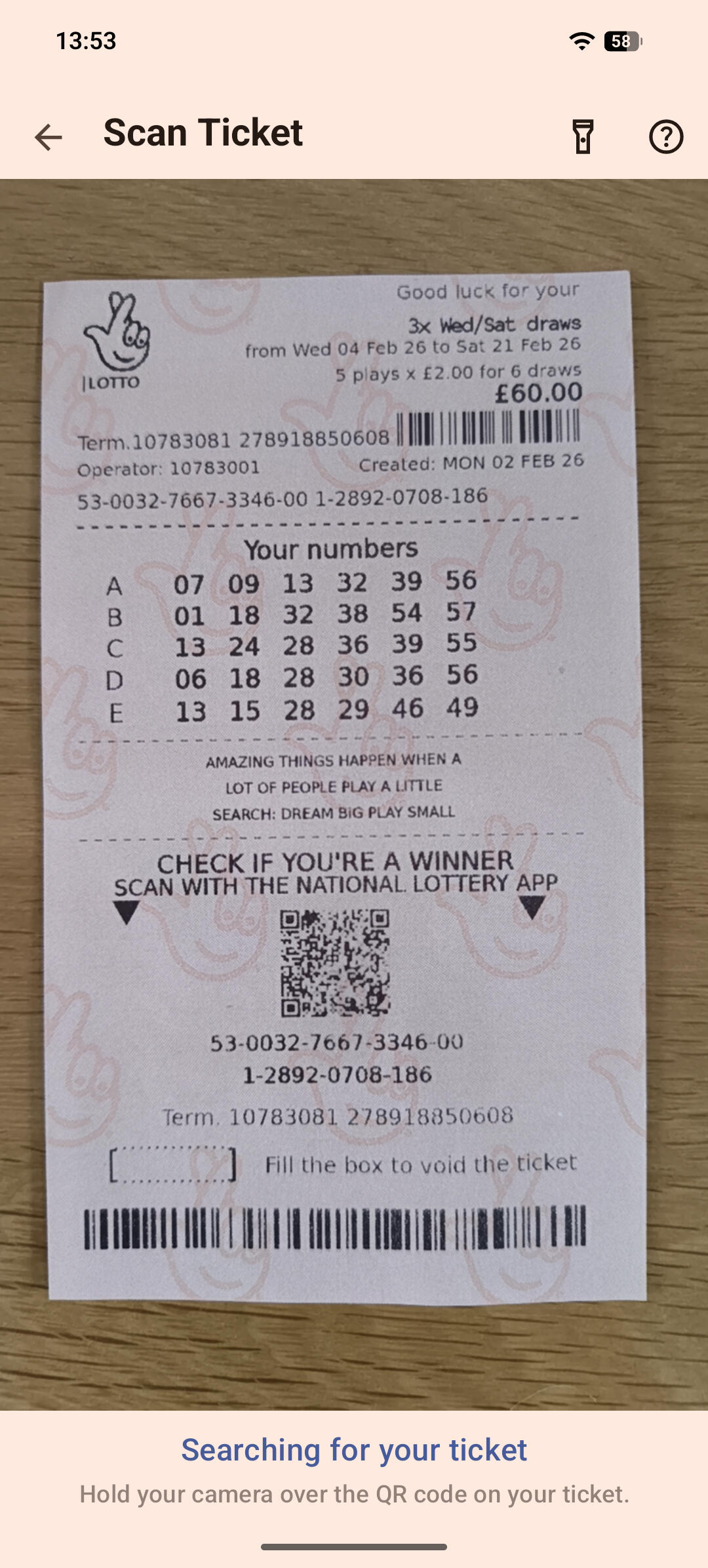 Scan your UK National Lottery tickets to find out instantly if you’ve won a prize. See how many numbers you matched and how much money you’ve won.