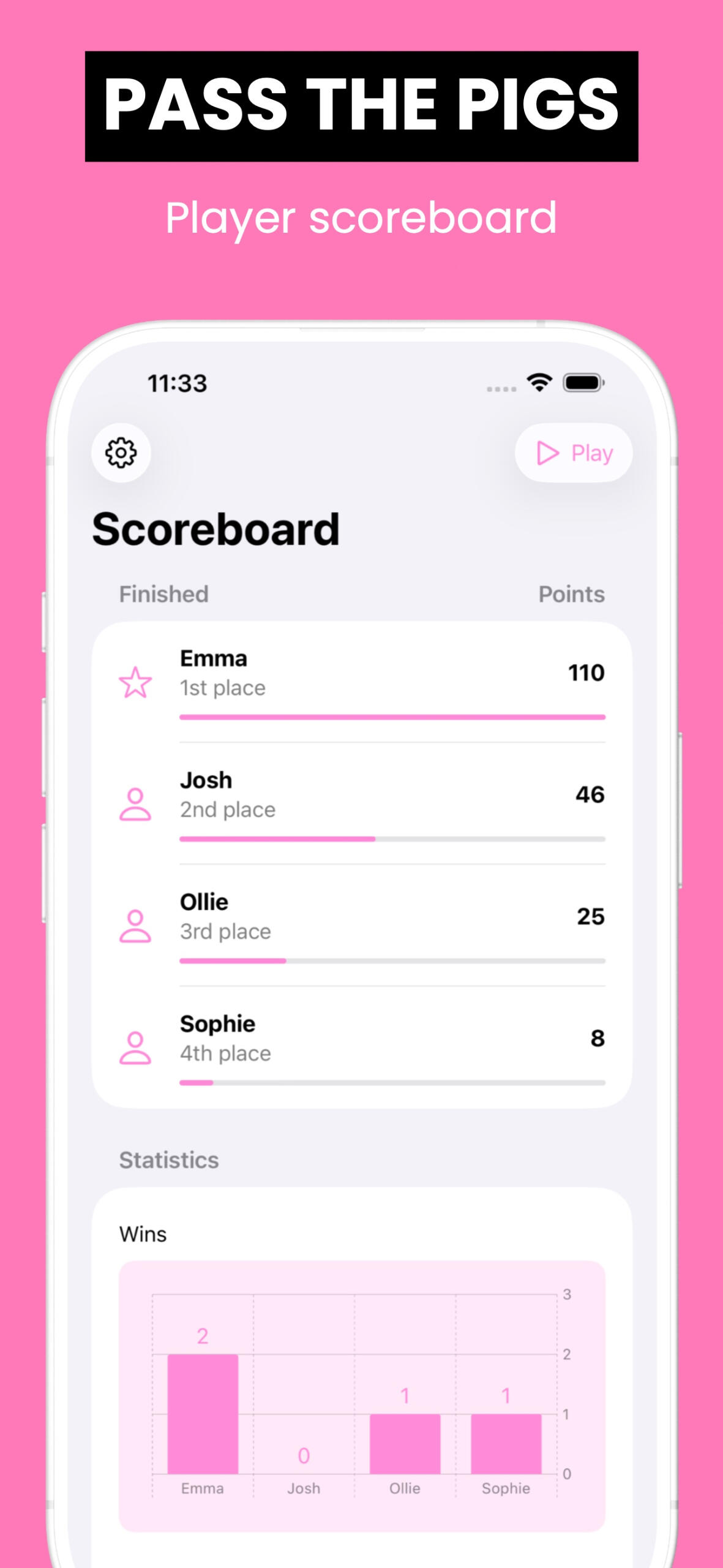 Count The Pigs is a scoreboard for the Pass The Pigs game. Use the app to record the score as you play the game with your friends.Features include:• Keep the score of 2 players (or unlimited players with an in-app purchase)